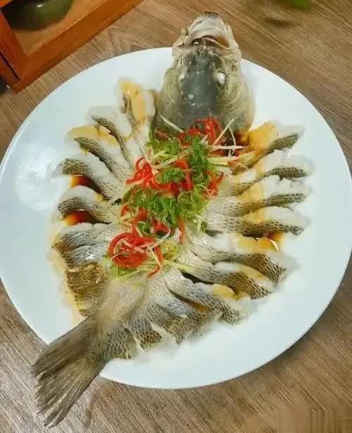 4. 蒸锅水烧开后,放入鱼盘,大火蒸8-10分钟(视鱼大小调整),关火虚蒸2分钟。