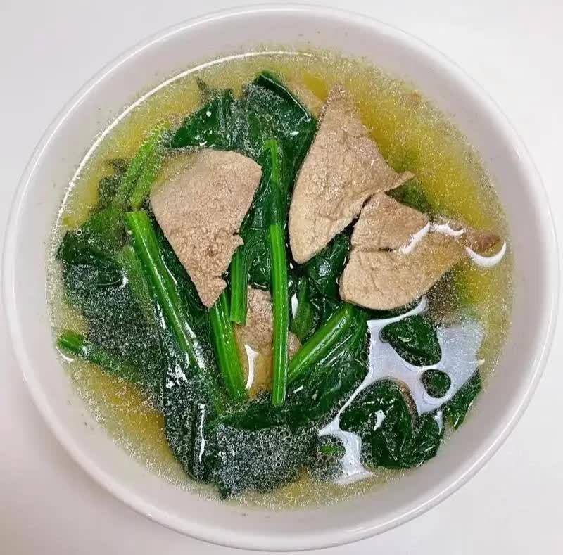 2. 猪肝焯水变色捞出;菠菜焯水 10 秒去草酸。