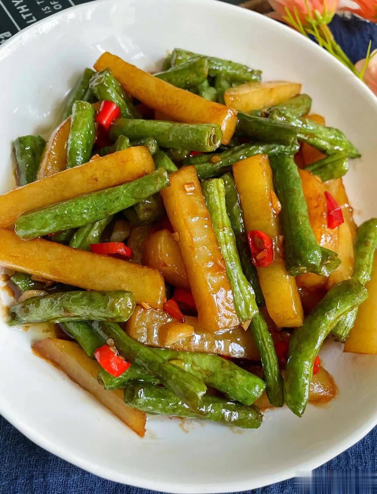 土豆、豆角、蒜末、小米辣、生抽、蚝油、老抽、淀粉、盐、白糖